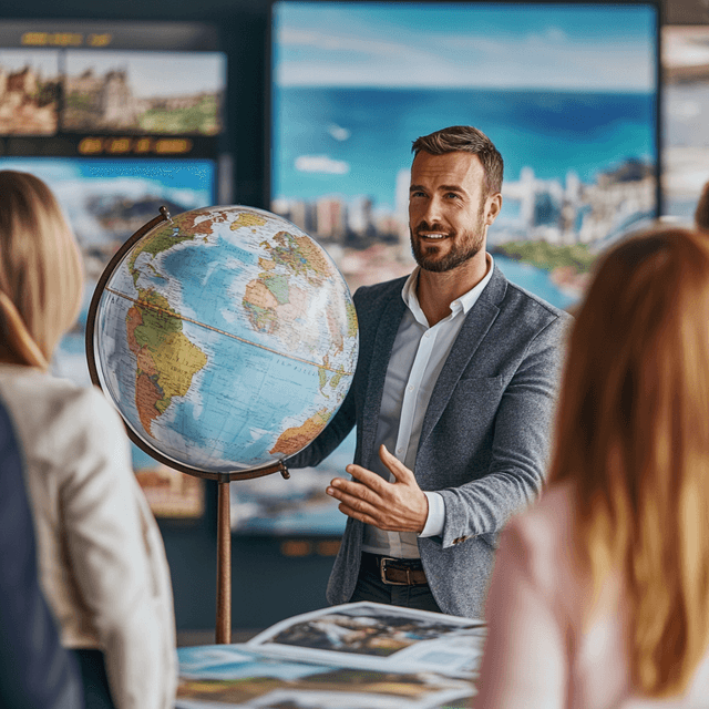 Менеджер по туризму - специалист по организации туристических поездок и путешествий. Формирует туры, бронирует билеты и отели, консультирует клиентов, решает возникающие проблемы. Профессия требует знания географии, коммуникабельности, стрессоустойчивости и клиентоориентированности. Работа возможна в туристических агентствах, туроператорских компаниях, гостиницах и онлайн-сервисах.